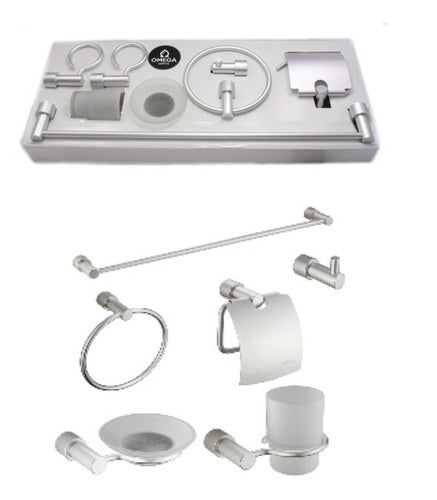 Accesorios Para Baño Set De 6 Pzas Mod. 6100 Acabado Satinado Marca Omega