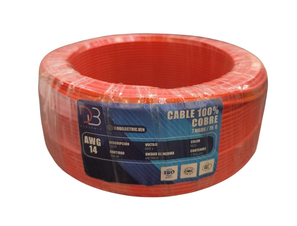 Cable Thw Nro. 10 Awg 75°C 600V / Color Rojo Rollo 100 Mts Marca Db Electric