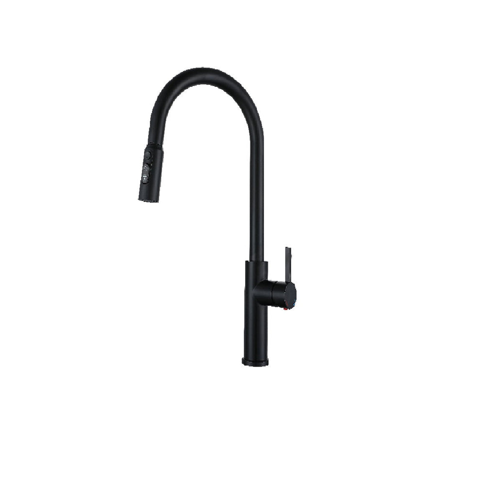 Griferia Monomando Alto P/ Fregadero Acero Inox Manguera Extraible Gris Y Negro Ref. Ginora-B Gasco