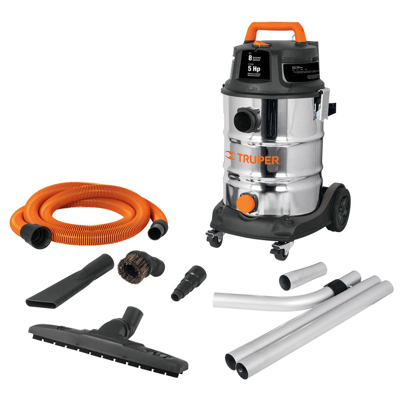 Aspiradora 8 Gal. Industrial En Acero Inox. 1300 W 5 Hp Mod.Aspi-8X Ref. 12088 Marca Truper