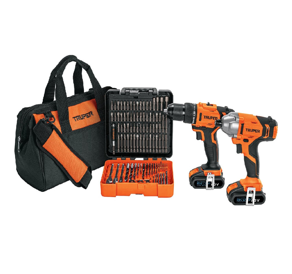 Taladro Rotom 1/2"+Destor 1/4" 20V 2Bat+Carg+Jgo Bro+Mal Mod. 102235 Combo-20 Ref K1453 Marca Truper