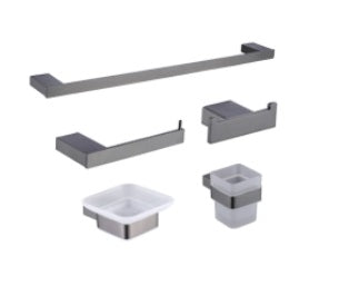 Accesorios De Baño 5 Pzas (Gunmetal Black) Cuadrado Ref. Gri.04.10 Marca Bari