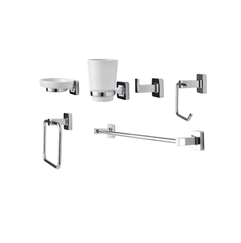 Accesorios De Baño 6 Pzas ( Acabado Cromado ) Cuadrado Serie Lago Ref. M2161 Marca Mhiler